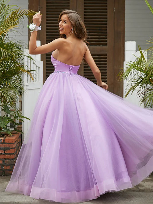 A-Line Princess Tulle Ruffles Sweetheart Sleeveless Floor-Length Dresses