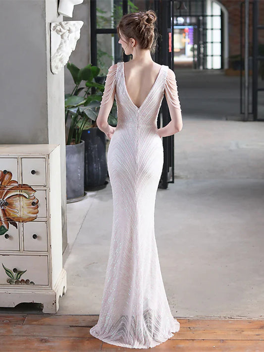 Mermaid / Trumpet Prom Dresses Sparkle & Shine Dress Formal Sweep / Brush Train Sleeveless V Neck Sequined Backless with Sequin Slit