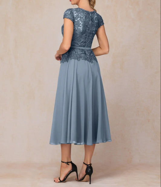 A-Line Tea Length Chiffon Lace Mother Of The Bride Dress
