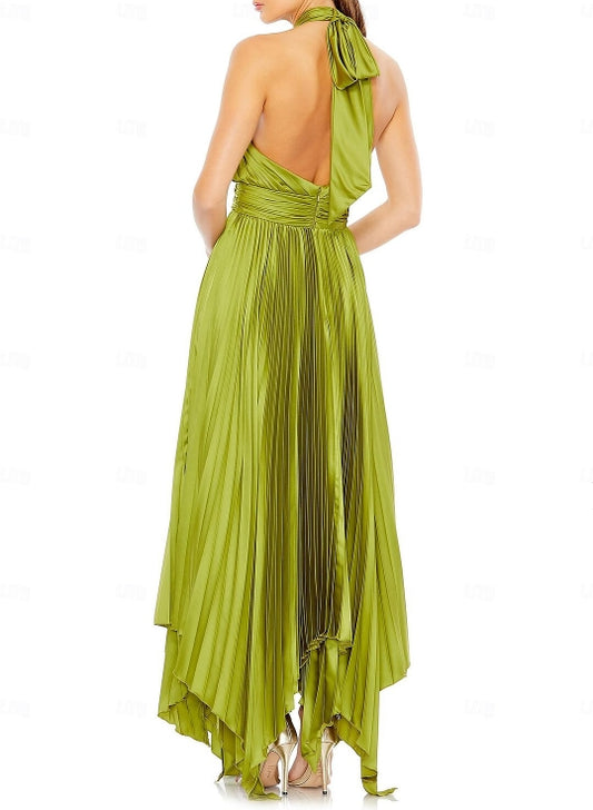 Clover Column Wedding Guest Dresses Formal Black Tie Ankle Length Sleeveless Halter Neck Charmeuse Backless with Pleats