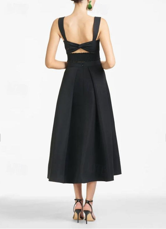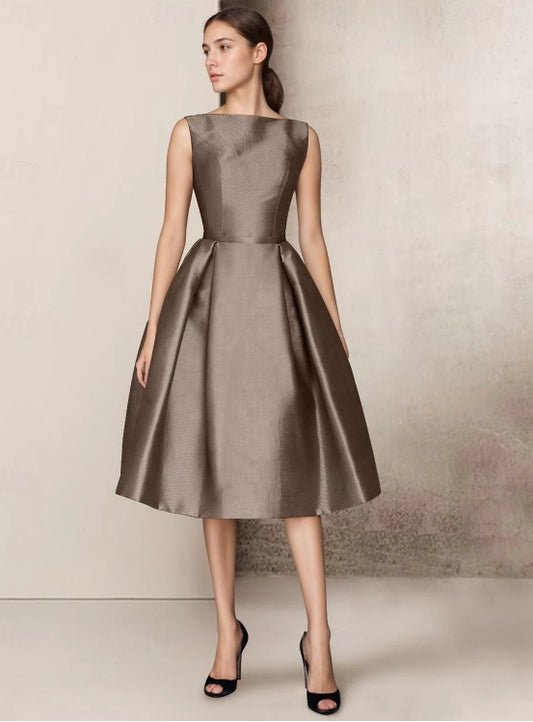 Wedding Guest Dresses Formal Cocktail Party Tea Length Sleeveless Satin with Criss Cross