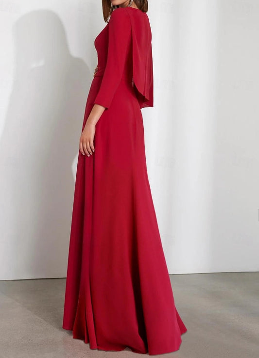 A-Line Wedding Guest Dress V Neck Ankle Length Chiffon 3/4 Length Sleeve Half Sleeve with Sash / Ribbon Ruched Cascading Ruffles