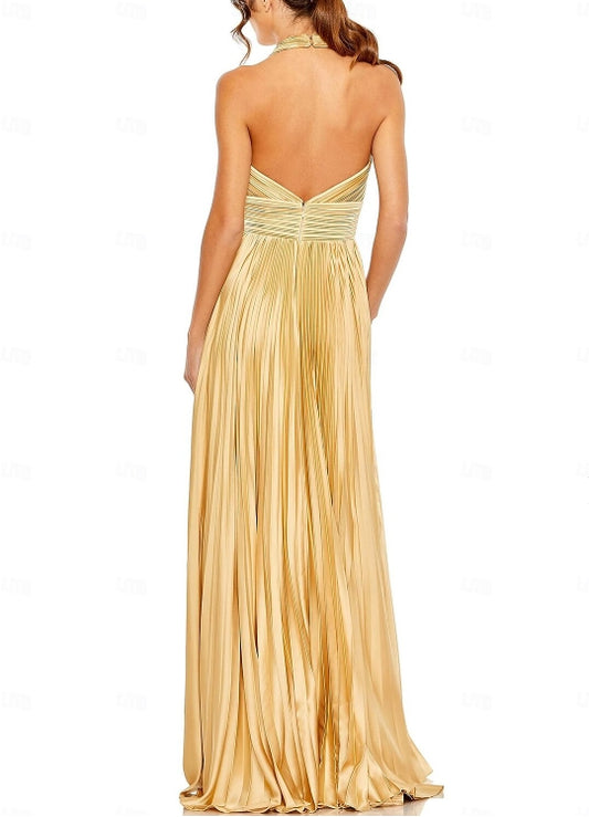 Wedding Guest Dresses Formal Black Tie Floor Length Sleeveless Halter Neck with Bow(s) Pleats