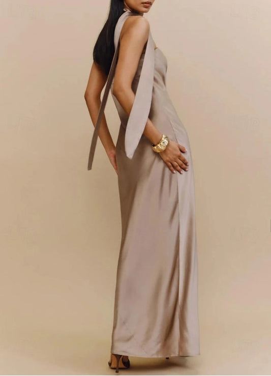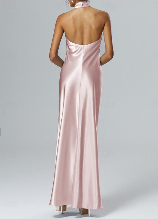 Sheath / Column Wedding Guest Dresses Formal Floor Length Sleeveless Halter Neck Imitation Silk with Slit