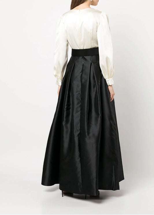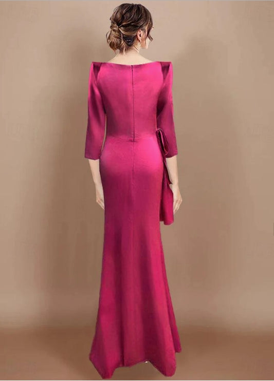 Sheath / Column Wedding Guest Dresses Floor Length Long Sleeve Cowl Neck Belt / Sash Satin with Bow(s)