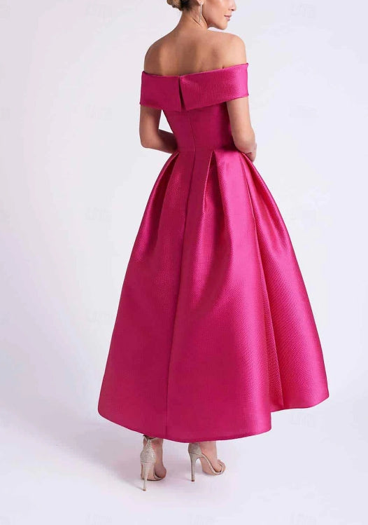 A-Line Evening Gown Wedding Guest Floor Length Sleeveless Off Shoulder Pocket Satin with Slit