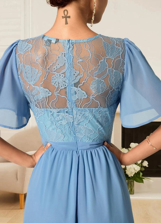 A Line Dress Maxi Dress Lace Ruffle Wedding Guest Formal V Neck Short Sleeve