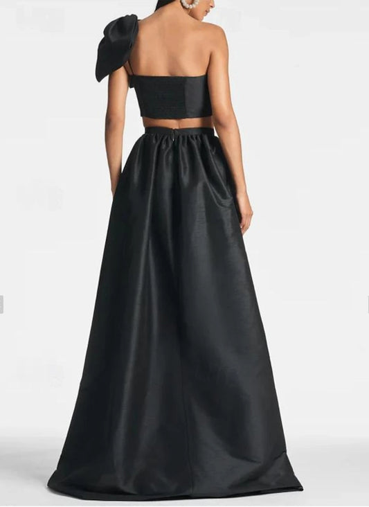 A-Line Wedding Guest Dresses Formal Black Tie Floor Length One Shoulder Pocket Satin with Bow(s)