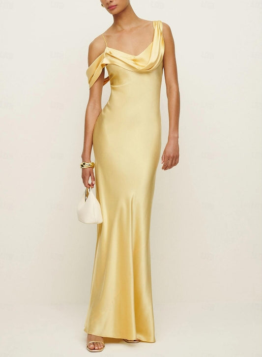Sage Mermaid Wedding Guest Dresses Black Tie Floor Length Sleeveless Cowl Neck Satin with Ruched