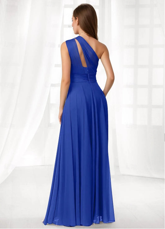 Sheath / Column Wedding Guest Dresses Floor Length One Shoulder Chiffon with Pleats