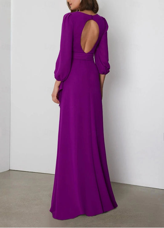 A-Line Wedding Guest Dresses Formal Black Tie Long Sleeve Chiffon with Ruched