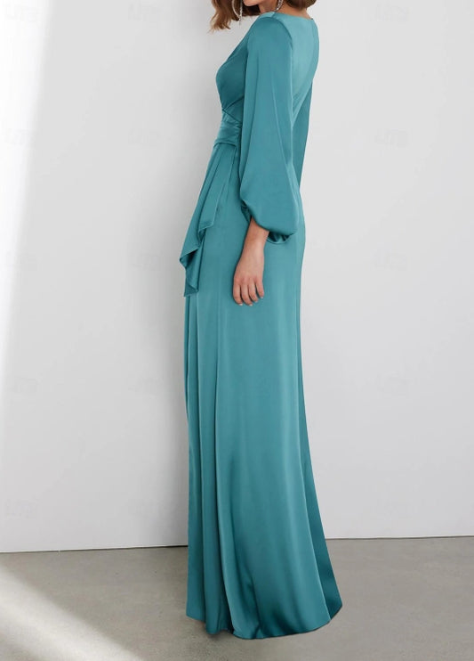 A-Line Wedding Guest Dress Formal Black Tie Long Sleeve V Neck with Ruched