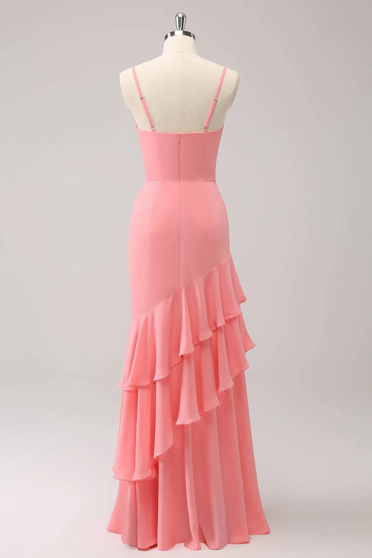 Coral Straps Mermaid Floor-length Wedding Guest Party Dress With Ruffles