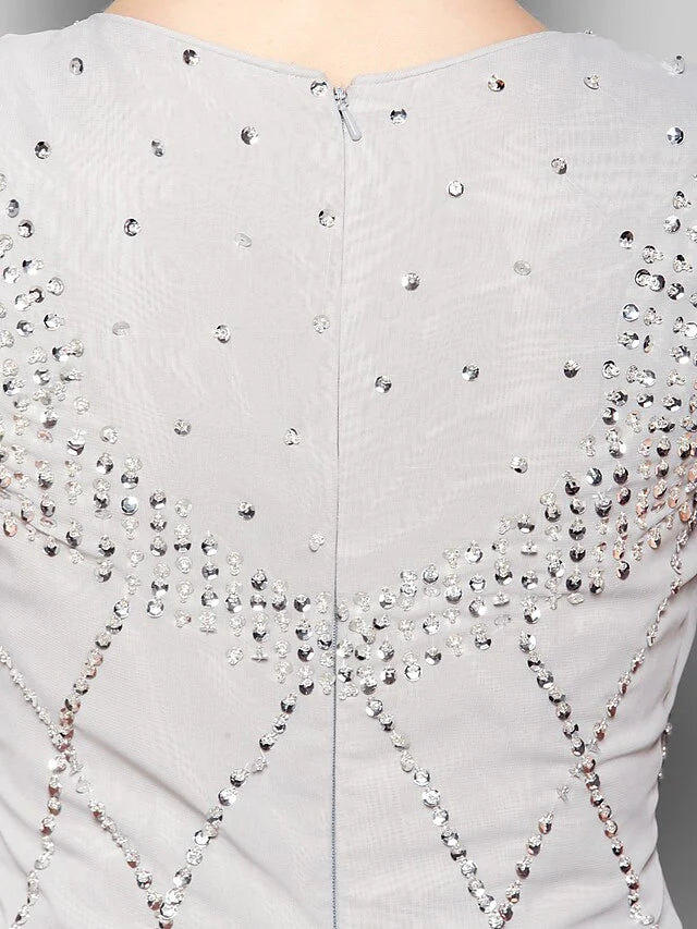 A-Line Mother of the Bride Dress Vintage Inspired Square Neck Floor Length Chiffon Sleeveless with Beading Draping