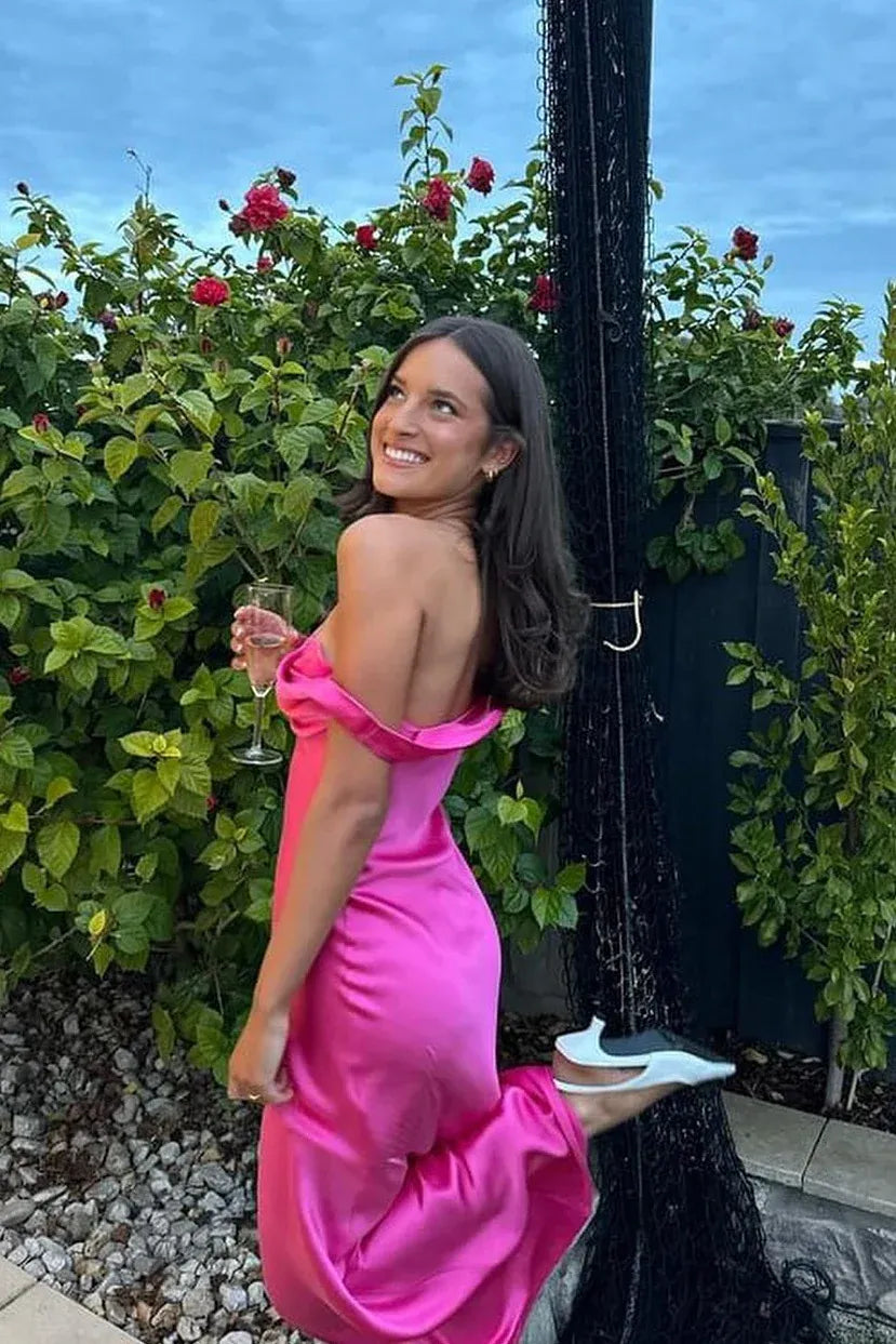 Casual Fitted Cowl Neck Sleeveless Satin Pleated Floor-Length Prom Dress