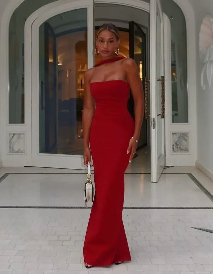 This striking red evening gown features a figure-flattering mermaid silhouette, crafted from a smooth, stretchy fabric that hugs your curves beautifully. The halter neckline adds a touch of modern elegance, while the fitted bodice and flared skirt create a dramatic, feminine shape. A concealed zipper at the back ensures a seamless fit, and the floor-length hem adds a touch of timeless glamour. Perfect for red carpet events, proms, and other formal occasions, this gown can be customized in your choice of color and size to create a truly head-turning look.