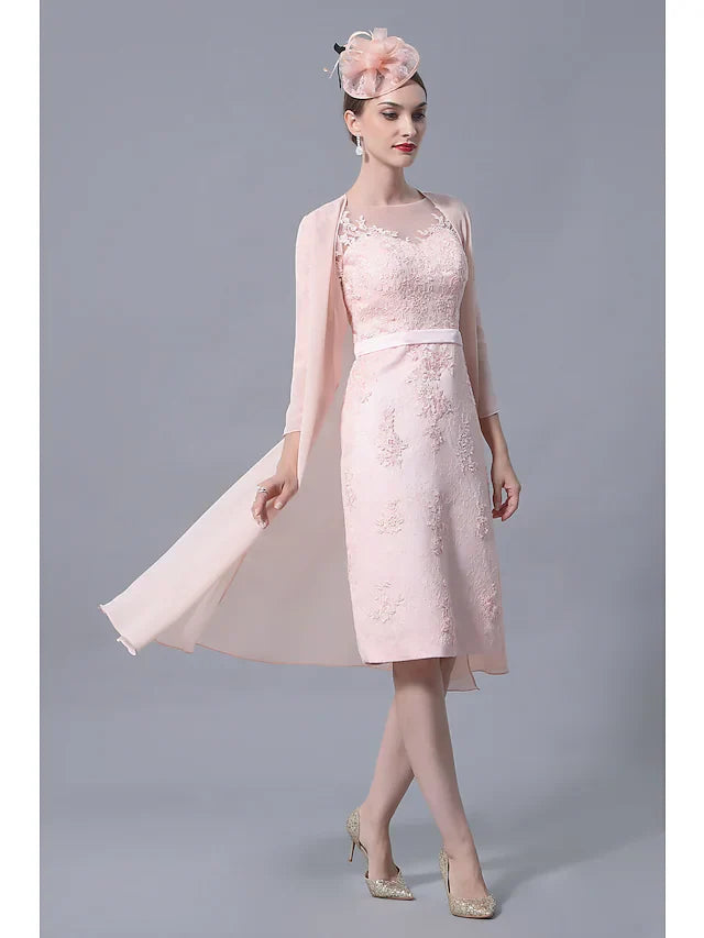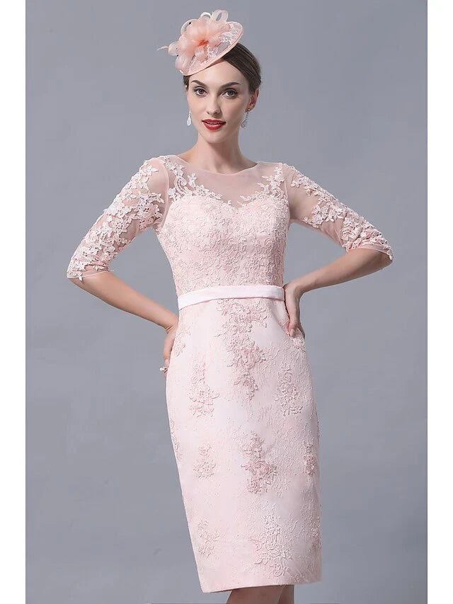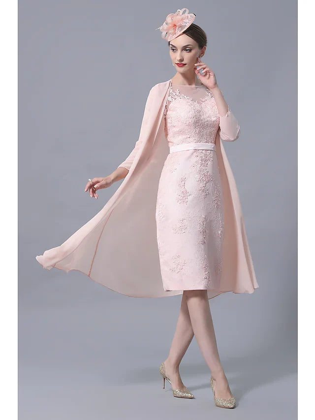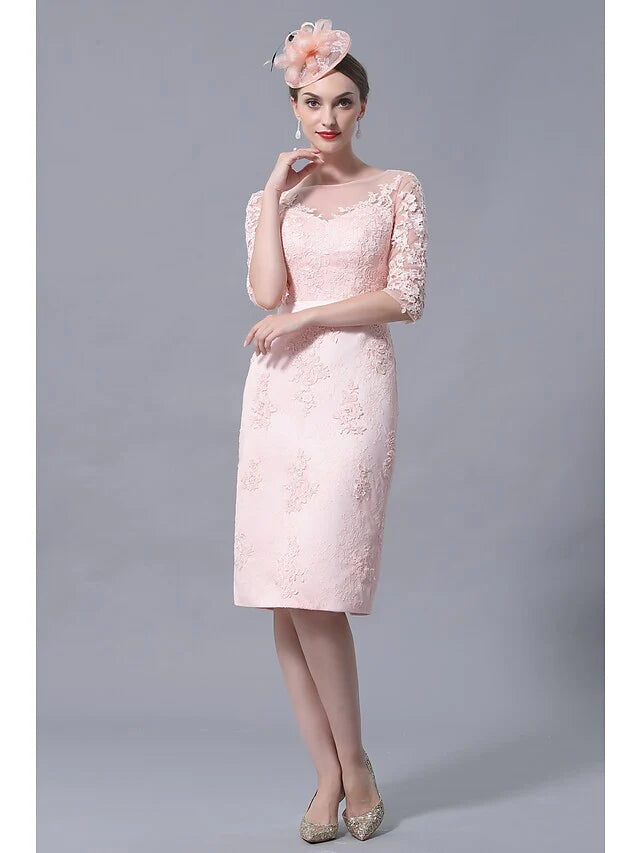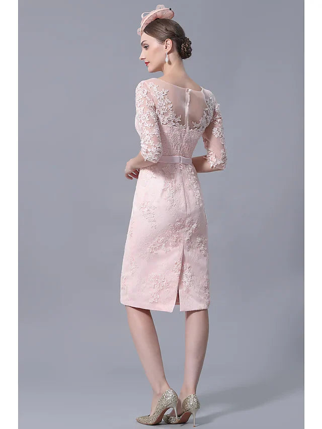 Mother of the Bride Dress Plus Size Elegant Vintage Bateau Neck Knee Length Chiffon Lace 3/4 Length Sleeve with Appliques