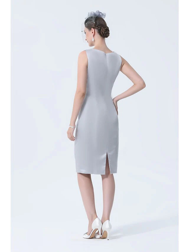 Mother of the Bride Dress Plus Size Elegant Vintage High Neck Knee Length Satin 3/4 Length Sleeve with Crystals Appliques