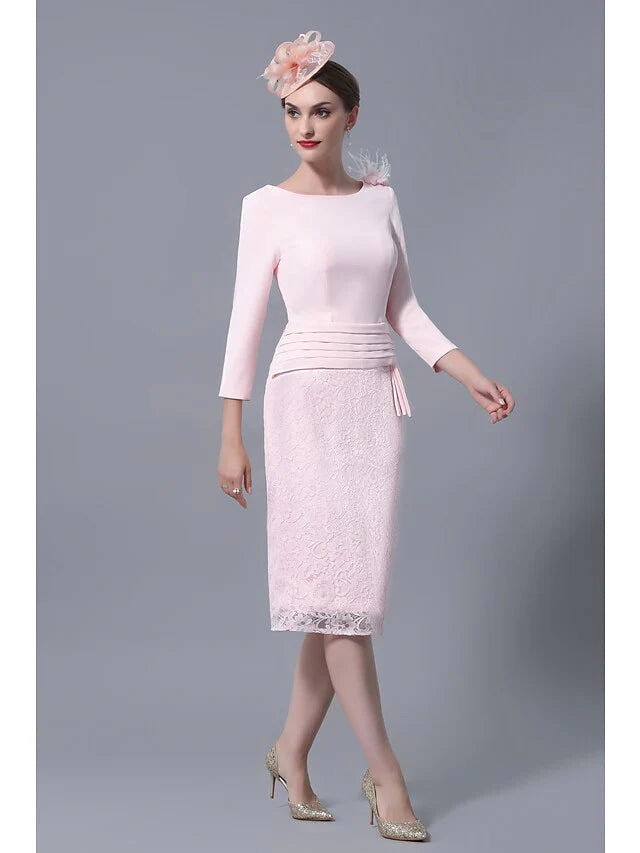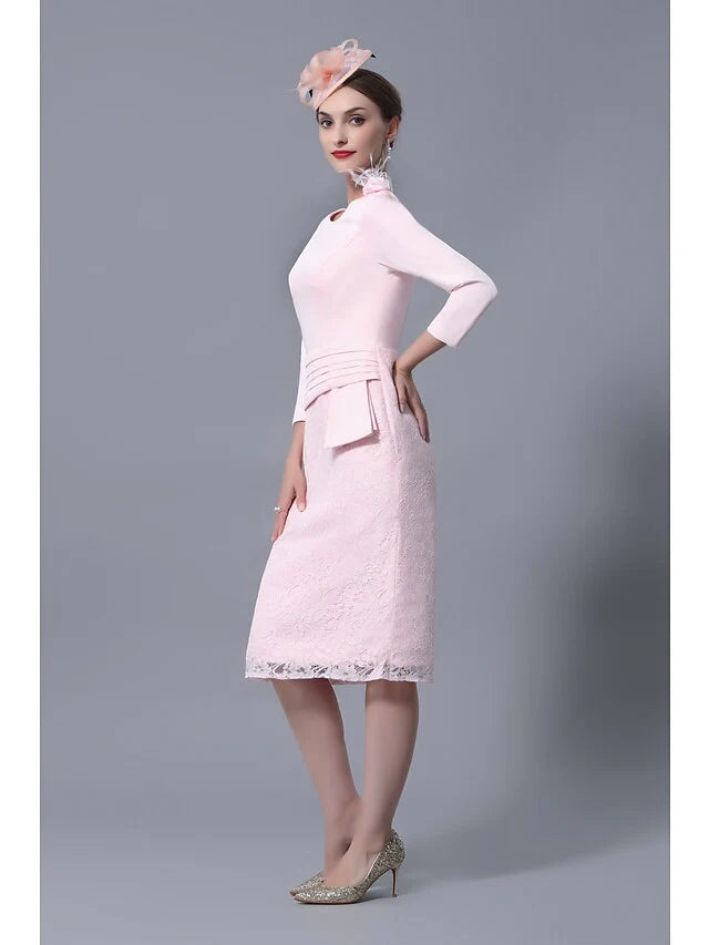 Mother of the Bride Dress Plus Size Elegant Vintage Jewel Neck Knee Length Lace 3/4 Length Sleeve with Lace Ruffles Appliques