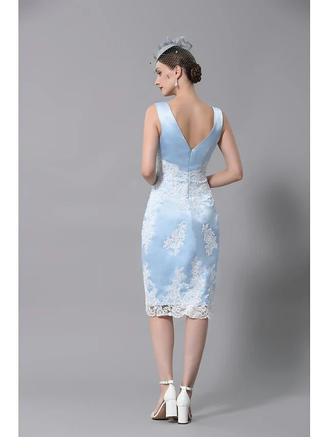 Mother of the Bride Dress Plus Size Vintage V Neck Knee Length Polyester Sleeveless with Lace
