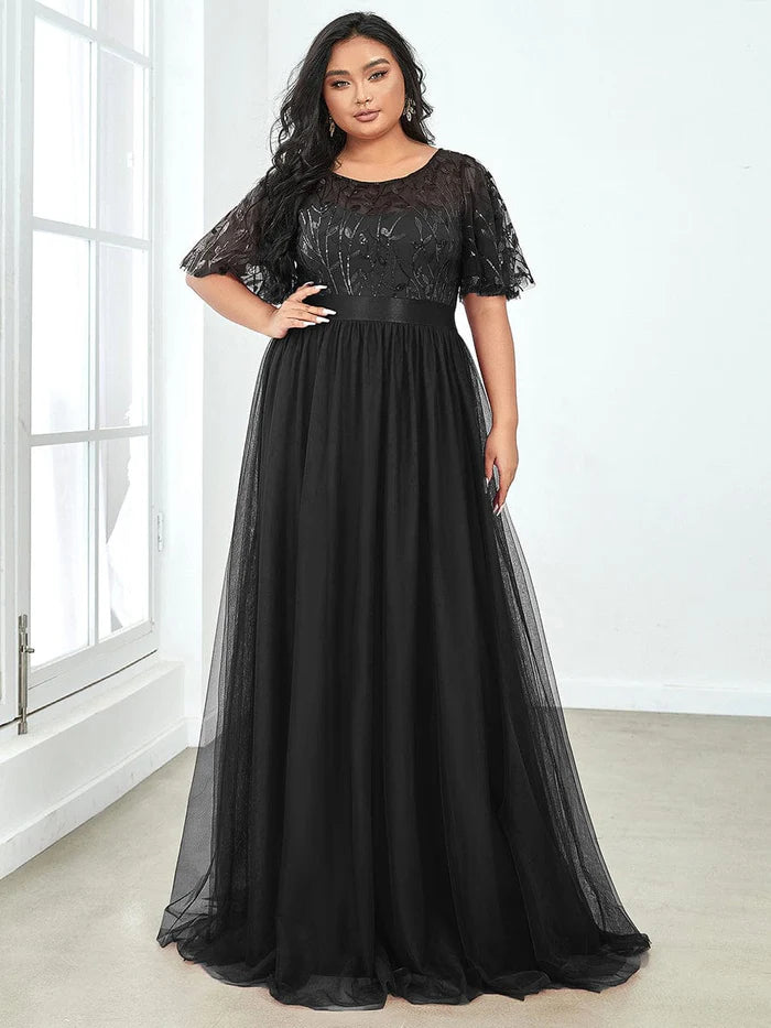 Plus Size Sequin Bodice Long Formal Evening Dresses Mother of the Bride Dresses