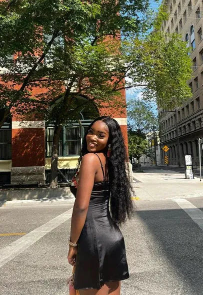 This romantic black mini dress features delicate spaghetti straps with floral detailing for a soft, feminine look. The sheath silhouette and sleeveless design create a flattering fit, while the open back adds a subtle touch of allure. Perfect for casual outings, daytime events, dates, or summer parties.