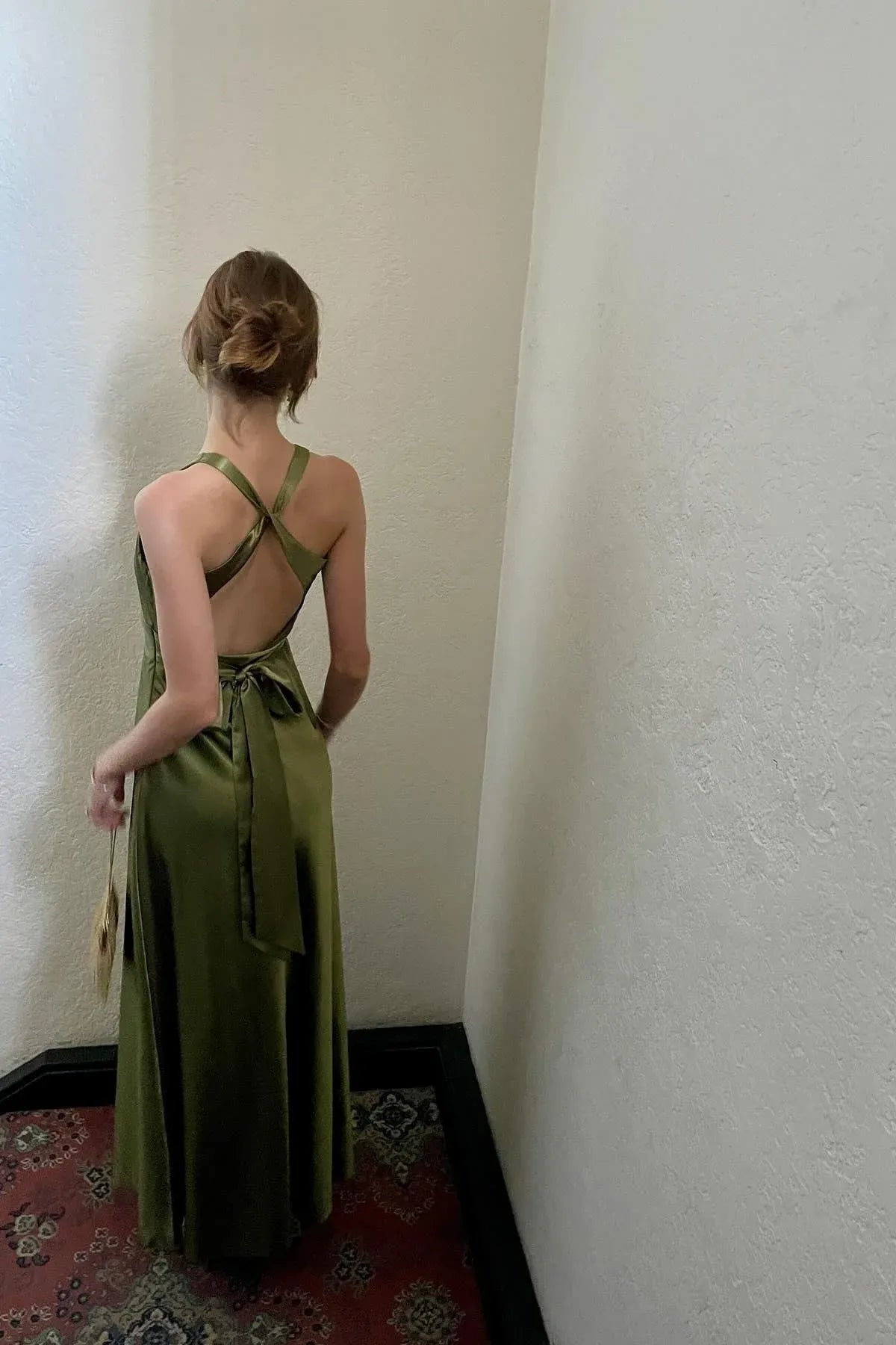 quyihu's Make a vibrant statement in this fuchsia satin maxi dress: featuring a halter neck, twist-front plunging V-neck, and a dramatic cutout back with a sash detail. The smooth satin fabric drapes beautifully, balancing bold color with elegant movement—perfect for summer weddings, cocktail parties, or upscale events. Bold, modern, and endlessly eye-catching.